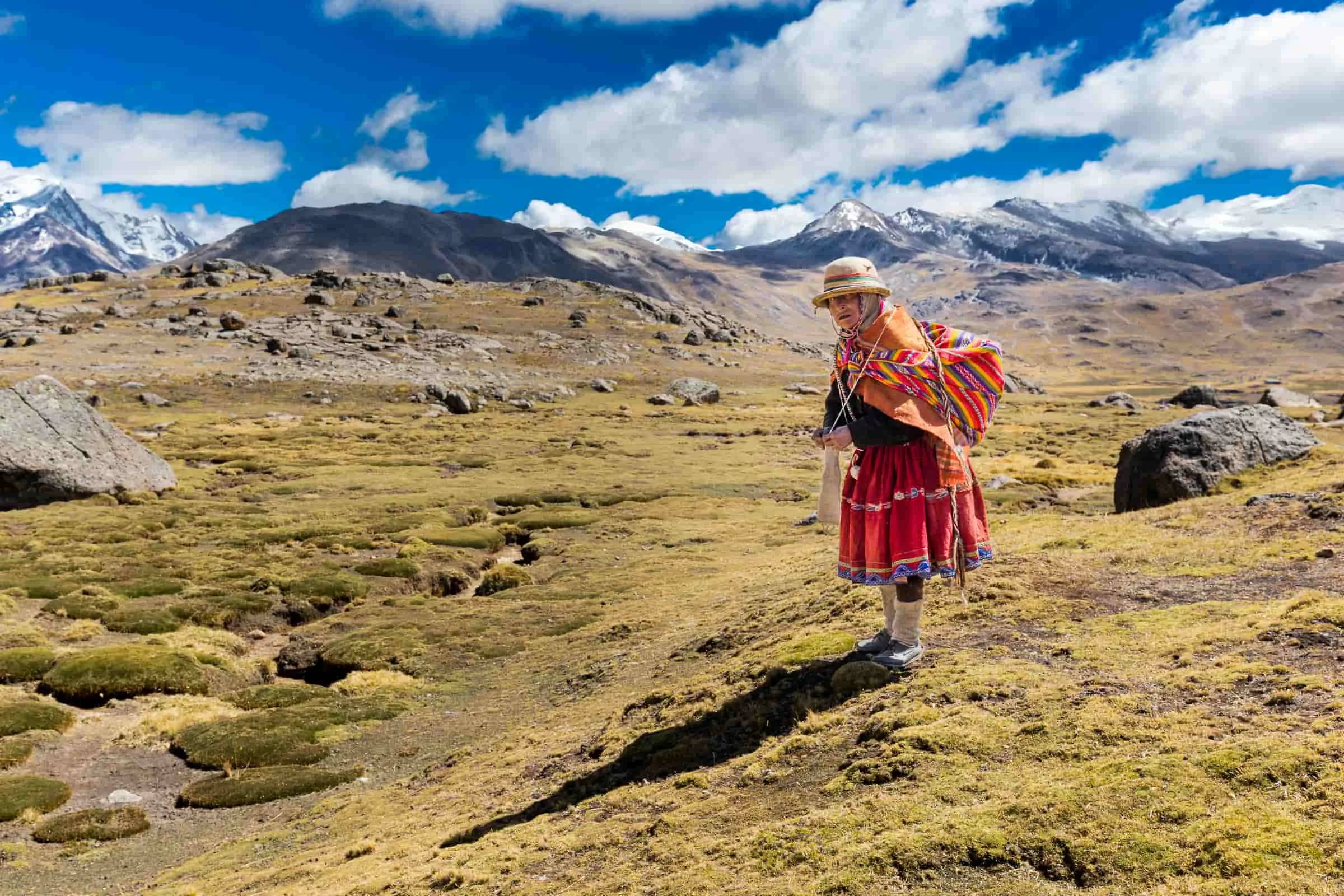 Quechua-speaking herders in Ocongate trade wool and coca leaves. They might greet you with hola and a nod.